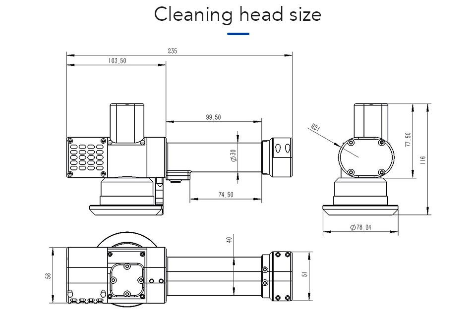 | Cleaning head weight (including isolator) | <0.75Kg |