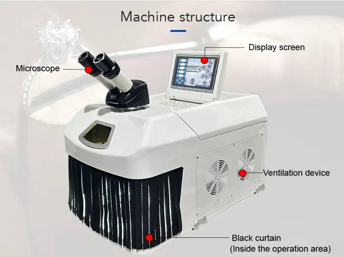 Equipped with a built-in CCD, the spatial structure and shape of the jewelry welding area can be clearly observed through a microscope, facilitating precise control of the welding position and force application.